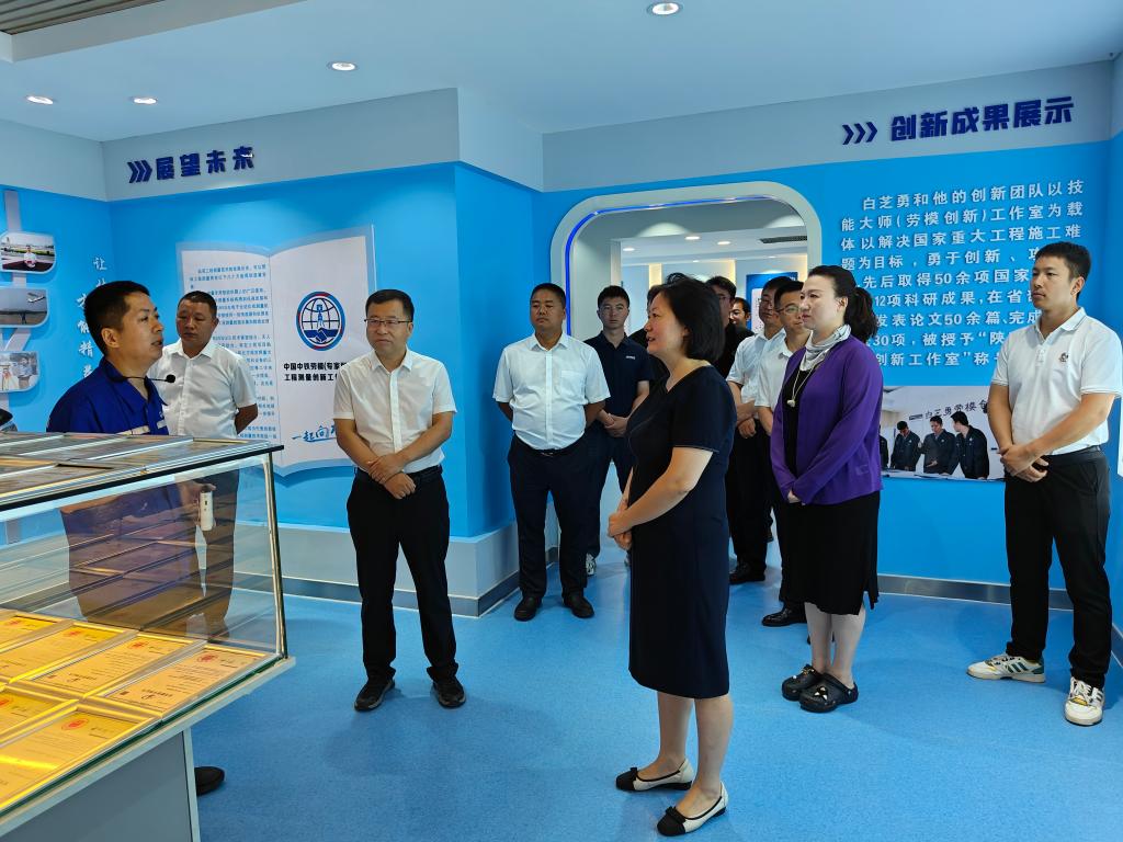 一行在全国劳模白芝勇的带领下,参观了白芝勇劳模创新工作室,该工作室于2013年7月成立,2014年8月和2015年10月,工作室先后顺利通过陕西省人社厅和国家人力资源和社会保障部的验收,被授予“国家级技能大师工作室”称号。全国劳模白芝勇从团队构成、人才培养、科研成果创新、社会影响和贡献等方面对工作室进行详细介绍。