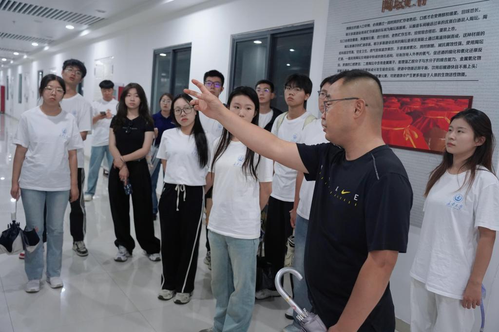 集团领导为实践队员讲解制酒工序