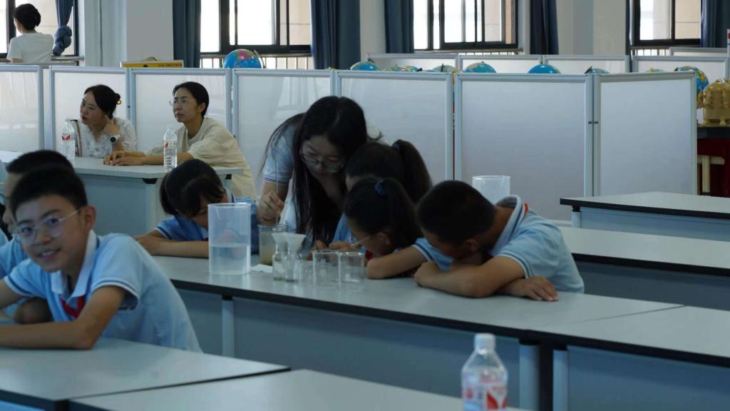 与此同时,科学实验部分在五楼科技馆同步展开,由暑期实践队的刘岩同学负责组织。在实验环节,台上留有一名队员担任主讲工作,台下留有辅助人员。实验活动共分为四个部分,分别聚焦黄土的组成、水的毛细现象、土壤的渗透性以及植被覆盖对黄土水土流失的作用。让同学们在实践中感受科学的魅力,加深对黄土特性的理解。刘岩同学首先引导同学们观察和分析黄土样本的颗粒组成,让他们了解了黄土的基本成分及其特性。随后,同学们进行了水的毛细现象实验,通过观察水在土壤中的行为,加深了对水在土壤中运动规律的认识。接下来,大家亲自参与了土壤渗透性实验,测量了不同条件下黄土的渗透速率,明白了土壤渗透性在农业生产和生态环境中的关键作用。实验的最后部分,通过对比实验,同学们直观地了解了植被覆盖对黄土水土流失的影响,从而更加认识到植被保护的重要性。
