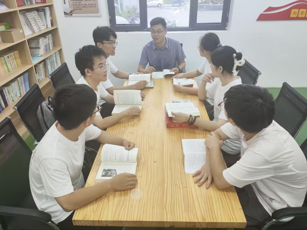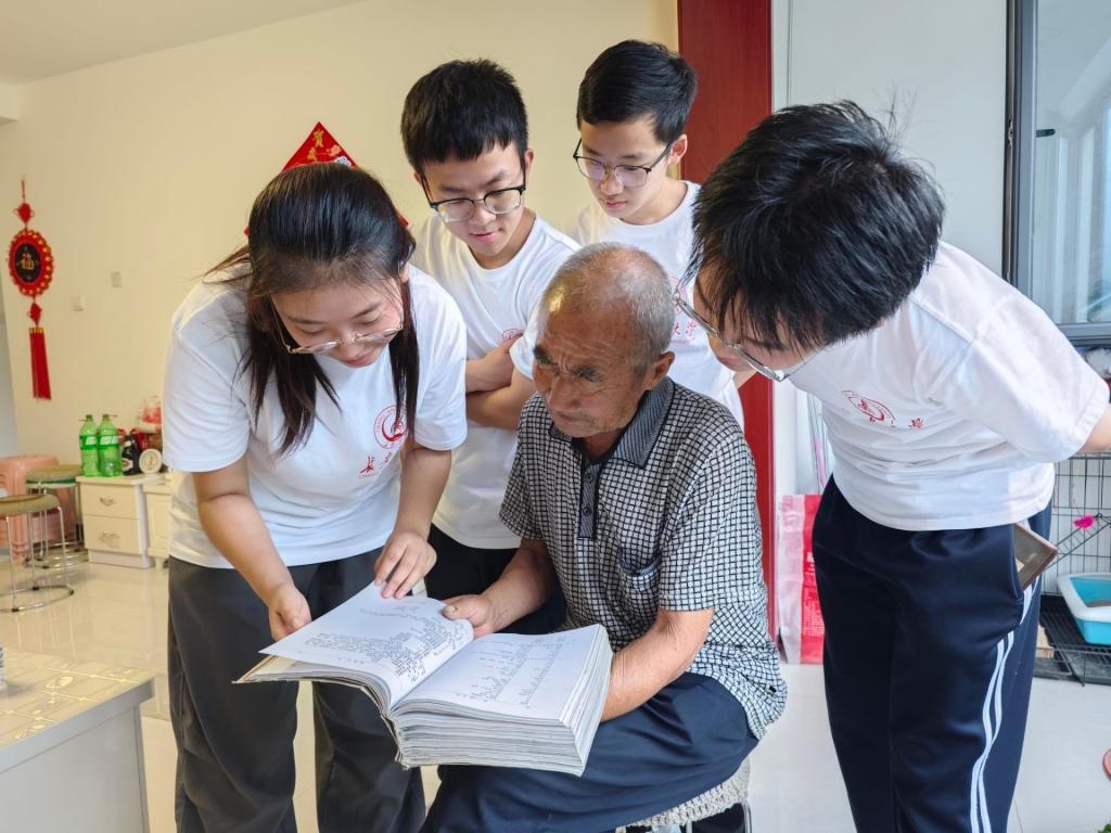 实践队在店房村书苑进行读书会实践队与店房村的杨爷爷一同阅览《阜平县志》