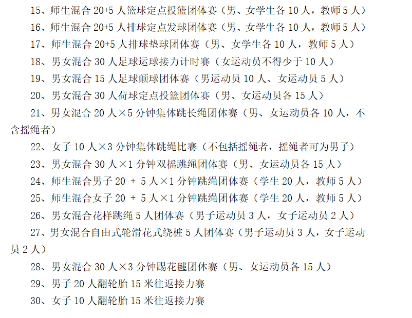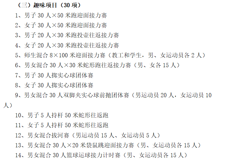 比赛地点:北校区东区田径场、足球场、篮球场、网球场、排球场、荷球场