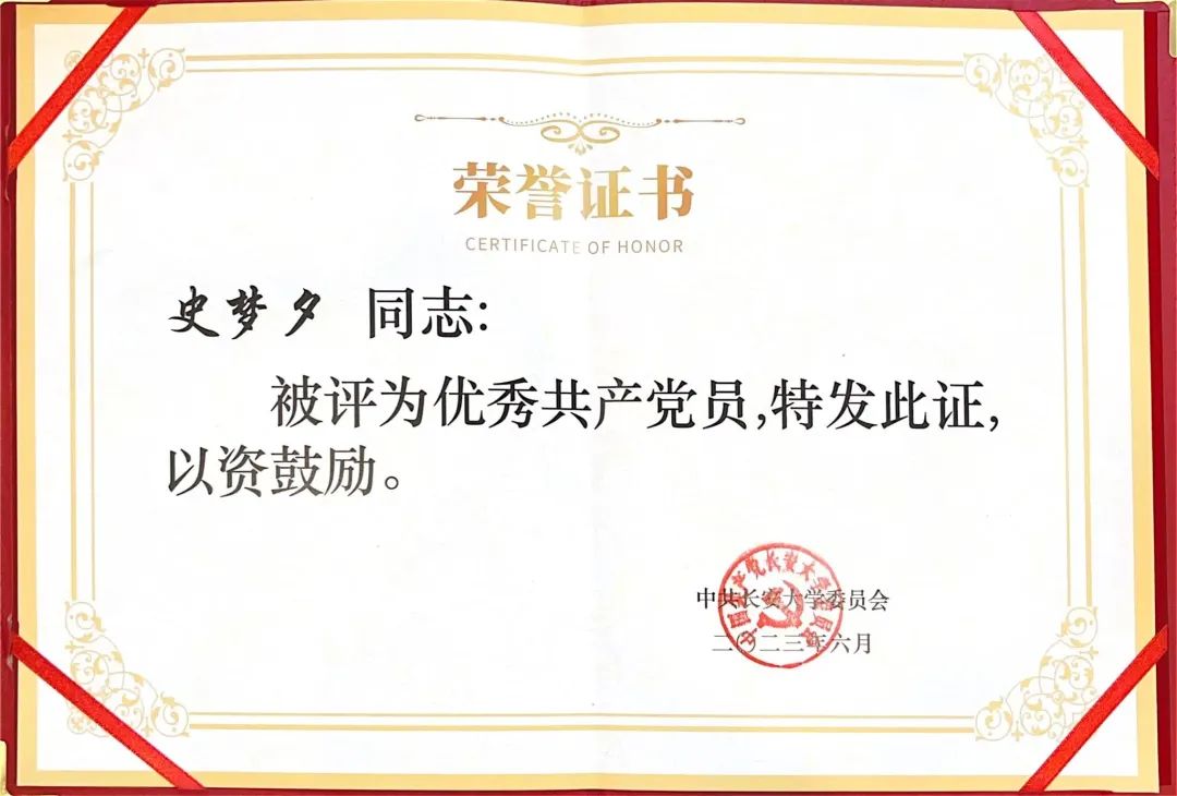 2021年度一等学业奖学金、2022年度一等学业奖学金、2023年度国家奖学金、2023年度山东高速奖学金。