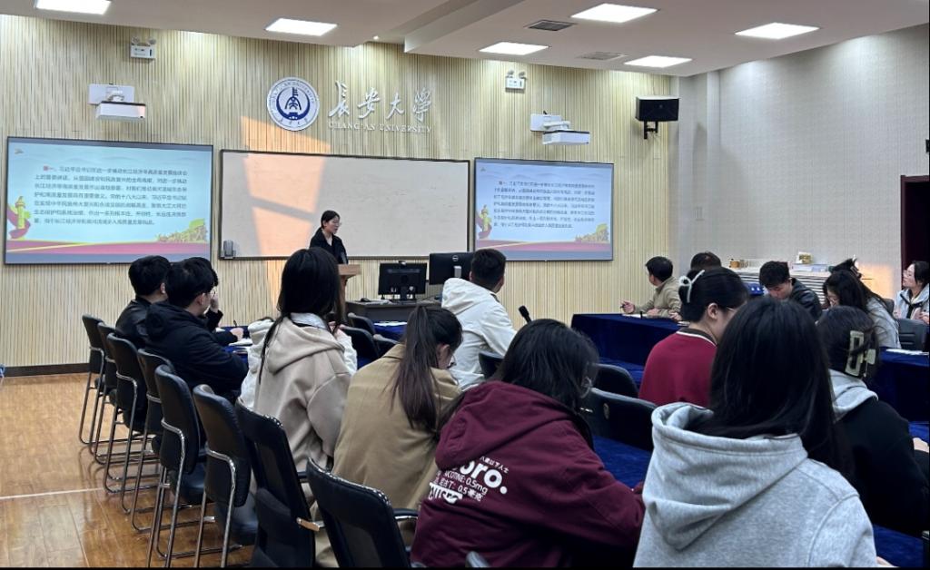 会议第三部分,由支部第一党小组能懿菡同志开展“学习贯彻进一步推动长江经济带高质量发展座谈会上的重要讲话精神”为主题的理论学习活动。她通过讲解和主题视频,带领大家了解了习近平总书记在进一步推动长江经济带高质量发展座谈会上的重要讲话的主要内容、总结了重要讲话的三大重要意义、从四方面学习了贯彻重要讲话精神的重要举措。
