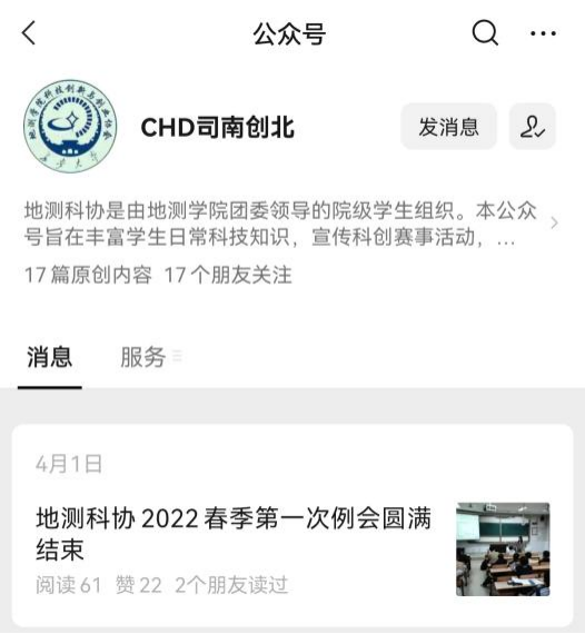 “CHD司南创北”微信公众号