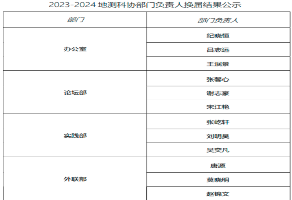 地测科协坚持守正创新,稳中求进的社团换届工作,不断落实“提高学生科技创新能力、引领学生自主创业潮流、全面提高学生综合素质”的宗旨,营造浓厚的科技创新与创业校园氛围。