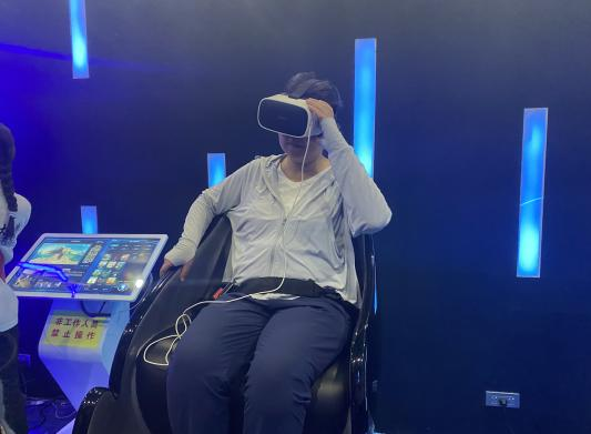 图为实践队老师和同学体验科技产品