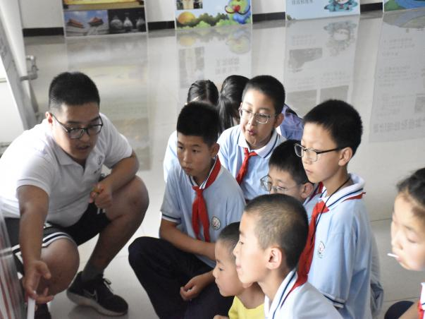 本次实践展板内容分为“认识地球”和“水的科普”两部分,主要由暑期社会实践队七名队员负责讲解。在讲解过程中,为了提高同学们的积极性,帮助小朋友们更好的理解拓展的科学知识,讲解员们设置了趣味小问题,鼓励同学们用自己的语言组织答案,并给表现突出的同学奖励铅笔、本子、棒棒糖等小奖品。