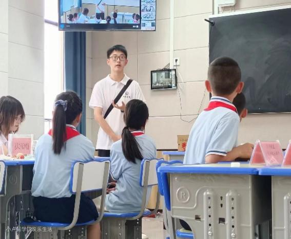 实践队队员刘岩用简单的话语,用生动有趣的授课方式,带动同学们做实验的积极性。实验过程中,实践队队员为实验完成效果好和积极主动回答问题的同学发放奖励,鼓励同学们积极发言、敢于动手,在同学们心中种下一颗科学的种子,激发他们探究科学知识真理的兴趣。