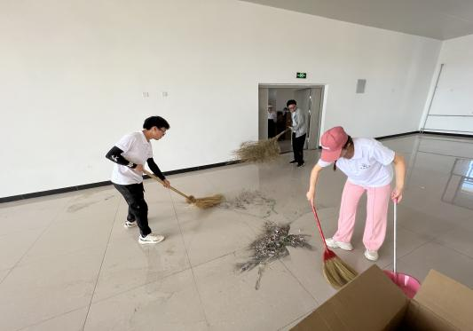 实践队员打扫和布置展馆现场