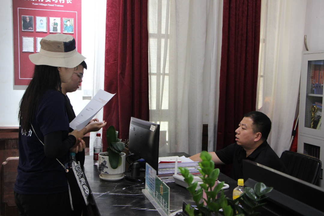 2023年7月17日上午,实践队在前期对袁家村进行了比较充分的调研后,走进袁家村村主任接待室与村委会工作人员进行了简短的交谈。首先,工作人员对此次实践活动表示了充分的肯定,认为实践队表现出良好的团队合作精神,走入乡村前沿,切实体悟乡村振兴内涵,体现了当代大学生为乡村振兴事业不怕困难、甘于奉献的良好品质。实践队也对村委会在实践活动中提供的帮助表示感谢并祝愿袁家村发展得越来越好。