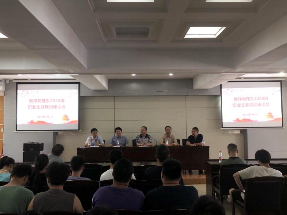副院长邵广周、冯宏研究员,郭文波研究员,杜中东高级工程师、地球物理系主任包乾宗与地球物理系实习学生开展职业生涯座谈会。会上,三位不同领域的专家结合自身求学和工作经历进行了主题分享,并重点针对行业发展、就业选择、知识积淀和技能锤炼等方面发表了自己的看法和见解,均嘱咐在座学生不论选择何种发展方向,都需要重视专业基础和思维的培养,不断为成功与发展累积经验。随后,部分学生就考研就业困惑、就业行业地区选择和专业未来发展进行了一对一提问与交流,与会专家和老师都进行了回复与指导。