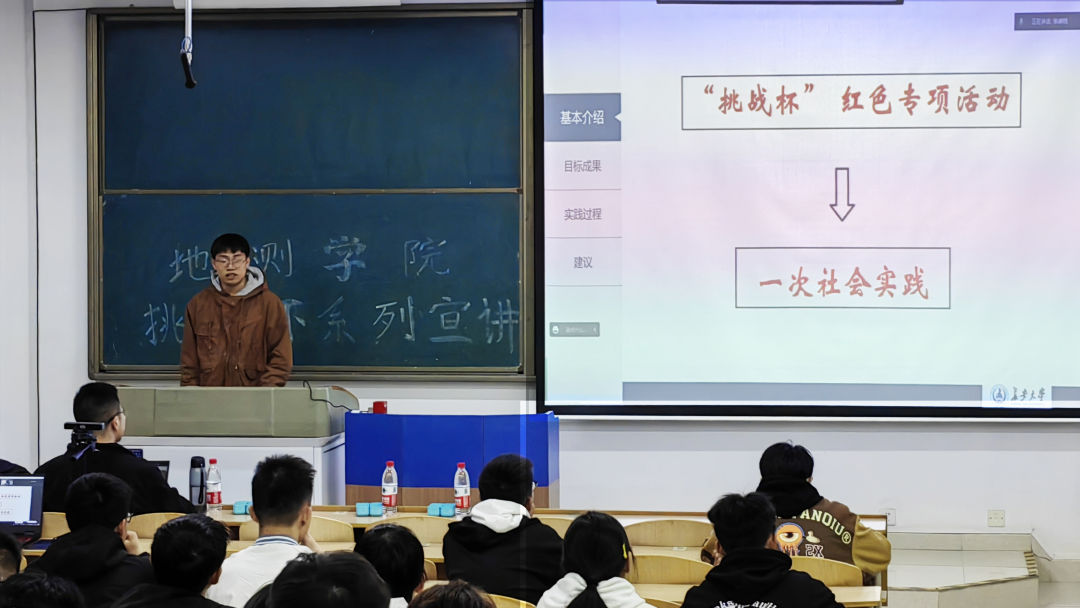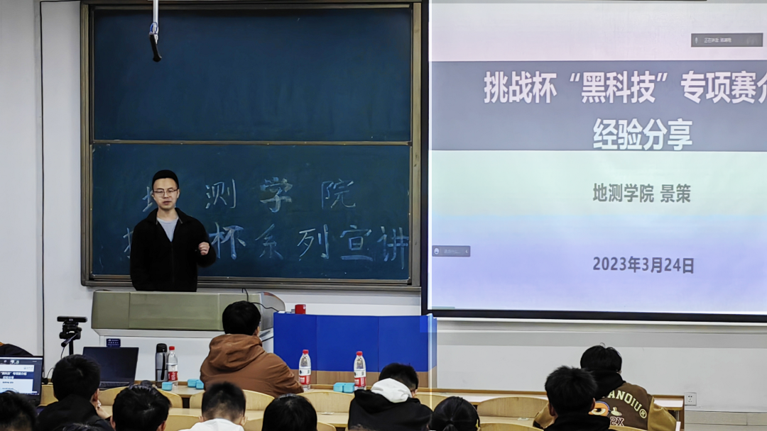 为了让同学们更好地了解挑战杯系列赛事的竞赛流程,做好赛前准备,同时调动同学们参加科创比赛的积极性,地测科协于2023年3月24日19:00在WH1203教室开展了做爱视频