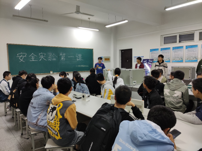 校园安全协会主席王雷为同学们简单介绍了本次“安全实验第一课”的操作流程、主要内容与一些实验仪器的安全注意事项。