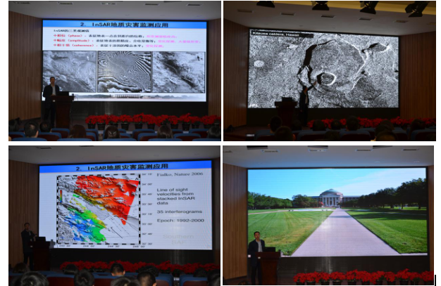 杨成生老师的主要研究领域为InSAR高精度监测数据处理、地质灾害的大范围调查与高精度监测相关的理论与应用研究。杨老师首先介绍了目前地质灾害及空间对地观测所采用的的先进技术,接着就其中的InSAR技术展开讲解。杨老师由浅入深,层层紧扣,先从路边积水上油滴的彩色条纹干涉现象、杨氏双缝干涉,引申到InSAR技术的基本原理。随后,杨老师绘声绘色的向同学们展示了InSAR技术在地震、火山、地面沉降、滑坡、城市建筑以及道路等方面的应用,同时也带领大家学习识别InSAR干涉条纹的判读方法。最后,杨老师指出InSAR技术的应用虽然存在一定的局限性,但是一系列多时相InSAR技术也在迅速发展,监测精度和可靠性也在不断提高,此外丰富开源的数据处理平台,自动化、智能化的数据处理手段正在一步步推动InSAR技术走向成熟。学术汇报之后,杨老师又向大家分享了在国外的访学经历以及有趣见闻,此外也鼓励同学们能够深入科研,与国际上学者进行交流。