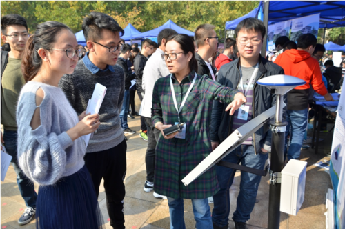 黄观文老师团队的科创成果——北斗滑坡卫士充满了好奇,北斗滑坡卫士是首款基于北斗云平台技术,专门用于滑坡实时监测的超低成本产品。许多同学和老师都驻足了解并询问,团队成员认真向评委老师和观展同学讲解设计思路、原理和使用方法。