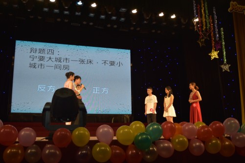 巧妙地联系在一起,进行即兴演讲,为母校送上了祝福,赢得了在场观众的阵阵掌声。