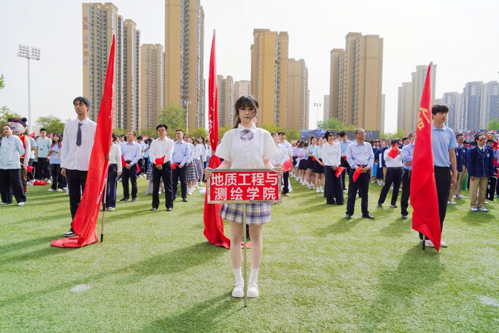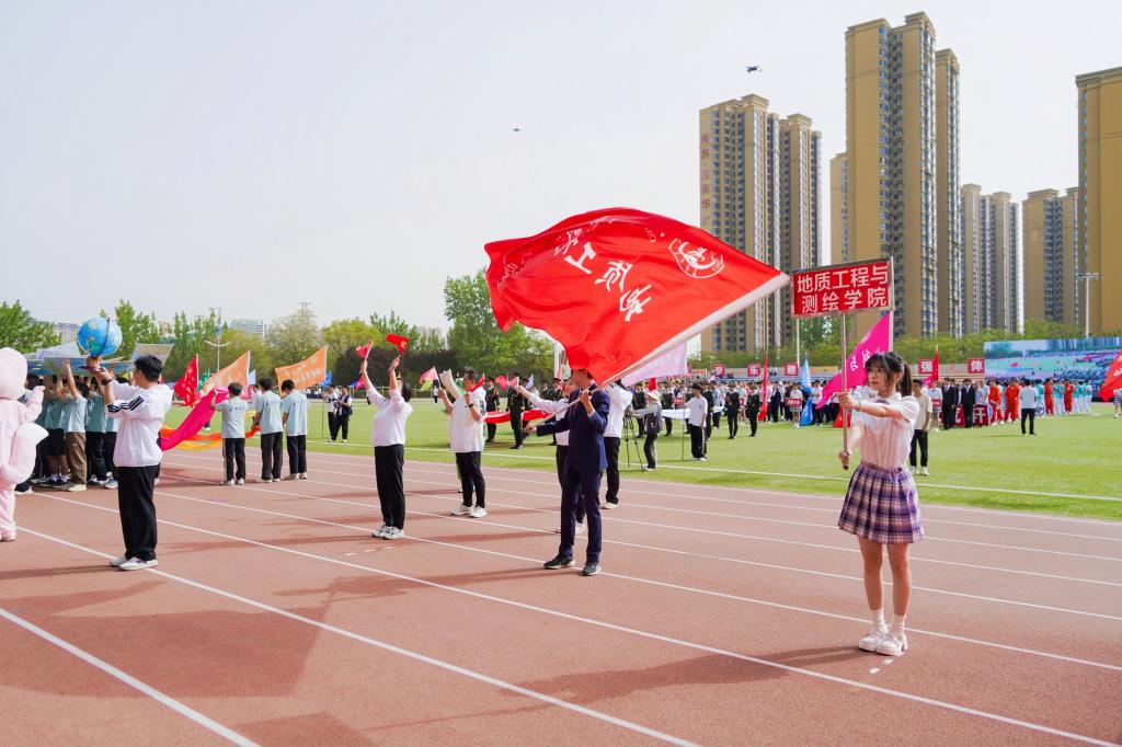 的同学们组成整齐方阵,迈着有力的步伐,喊着激昂的口号阔步走来。他们的身姿挺拔,展现出学院独特的精神风貌和蓬勃朝气,那整齐划一的节奏,洋溢着青春的无限活力,感染着现场的每一位观众。