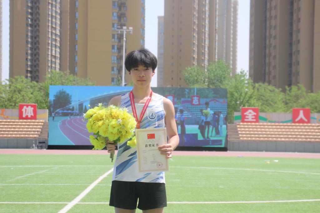 在男子100米比赛堪称速度与激情的盛宴,刘梦豪坚毅地站在起跑线上,眼神中透露着自信和对胜利的渴望。发令枪响起,他就如同离弦的弓箭一般,步伐强健有力,一步步紧追着对手。他凭借着出色的发挥和自身的实力,冲过终点线,取得了第三名的好成绩。那一刻他有了傲视前方的勇气。