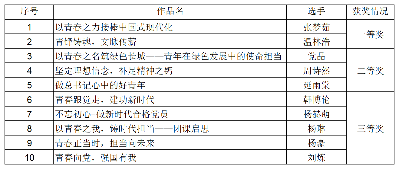 本次大赛结果如下: