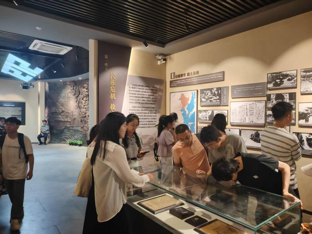 在展厅内,同学们了解到了张学良少帅的辉煌事迹和家庭背景。1934年,张学良回国后被蒋介石封为“剿匪”司令,在后面接连几场与红军的战斗失利后开始寻求与中共合作;1936年12月,蒋介石亲临西安,逼迫张、杨继续“剿共”。张学良多次“苦谏”无效,杨虎城与张学良商议后,二人于12月12日凌晨发动“兵谏”,在临潼华清池扣留蒋介石,提出停止内战、一致抗日等八项救国主张。