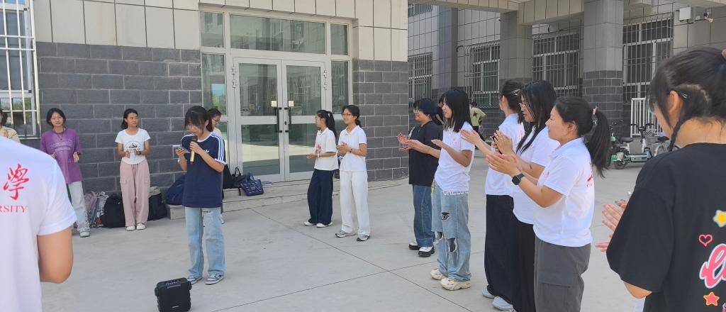 实践队员精心策划了“小鸡破壳”“人体传声机”“巧记姓名”等小游戏,旨在引导同学们在轻松愉悦的氛围中探索内心,更好地认识自我、悦纳自我、突破自我。活动现场氛围融洽,同学们从陌生到熟识,从拘谨到活跃,一个个热情高涨、笑容洋溢,积极参与并享受其中。实践队员方敏以及当地学生潘泺宇带来的歌曲将本次活动的氛围烘托到了高潮,同学们纷纷鼓掌喝彩,一同加入到欢快的歌声中。
