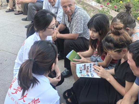 赴新疆焉耆“丝路育才传薪火,推普同心绘华章”暑期社会实践队于7月20日晚,在新疆巴音郭楞蒙古自治州焉耆回族自治县人民广场开展“学好说好普通话,利国利民利大家”主题推普活动,以青春力量践行语言文字推广使命。此次活动是为落实国家语言文字事业发展的重要战略部署,旨在助力新疆文化教育发展,铸牢中华民族共同体意识。
