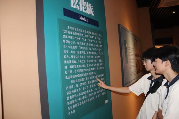 实践队来到贵州省民族博物馆,这座侗族鼓楼造型的建筑本身便蕴含着文化底蕴。队员们主要参与了“记忆与传承--贵州世居民族历史文化展”“天工开物·中华手工艺展”“同向中华--贵州民族古籍工作40年成就展”“艺笔共绘同心圆”文艺作品展和“贵州非遗剪纸艺术作品展”5个展区的观展体验,深入了解当地多民族融合发展的历史与成就。