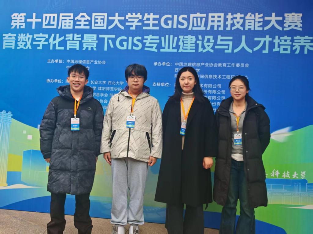 和土地学院的四名学生(张凯洋、刘天昊、吴烨楠、张梦茹)联合组队,在指导教师赵建林和吴田军的携手带领下,在首届全国大学生GIS应用技能大赛陕西省邀请赛中荣获特等奖,并在此次全国大赛中荣获二等奖。