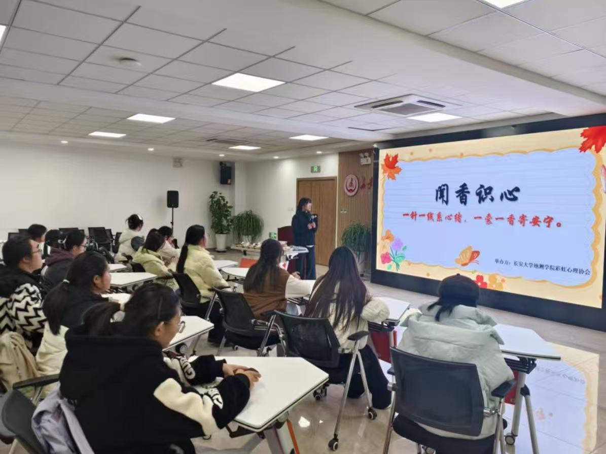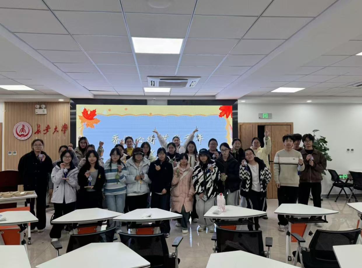彩虹心理协会于2025年11月26日19:00在北校区朝晖园一站式学生社区团体活动室举办了“闻香识心”香囊手作活动,30余名同学参与其中。