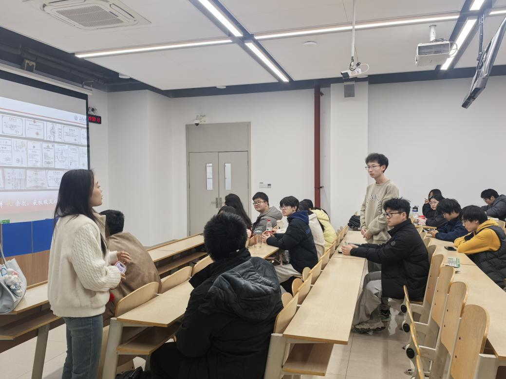 青年志愿者服务队于WH1306举办“以青春赴使命,以志愿赴山河”国际志愿日主题宣讲活动。活动邀请张雅妮、侯晓庆、苏东辉三位优秀青年志愿者,以亲身经历为笔,绘就“把青春写在中国大地上”的壮丽图景,为现场百余名学生们带来了一场有温度、有深度的精神盛宴。