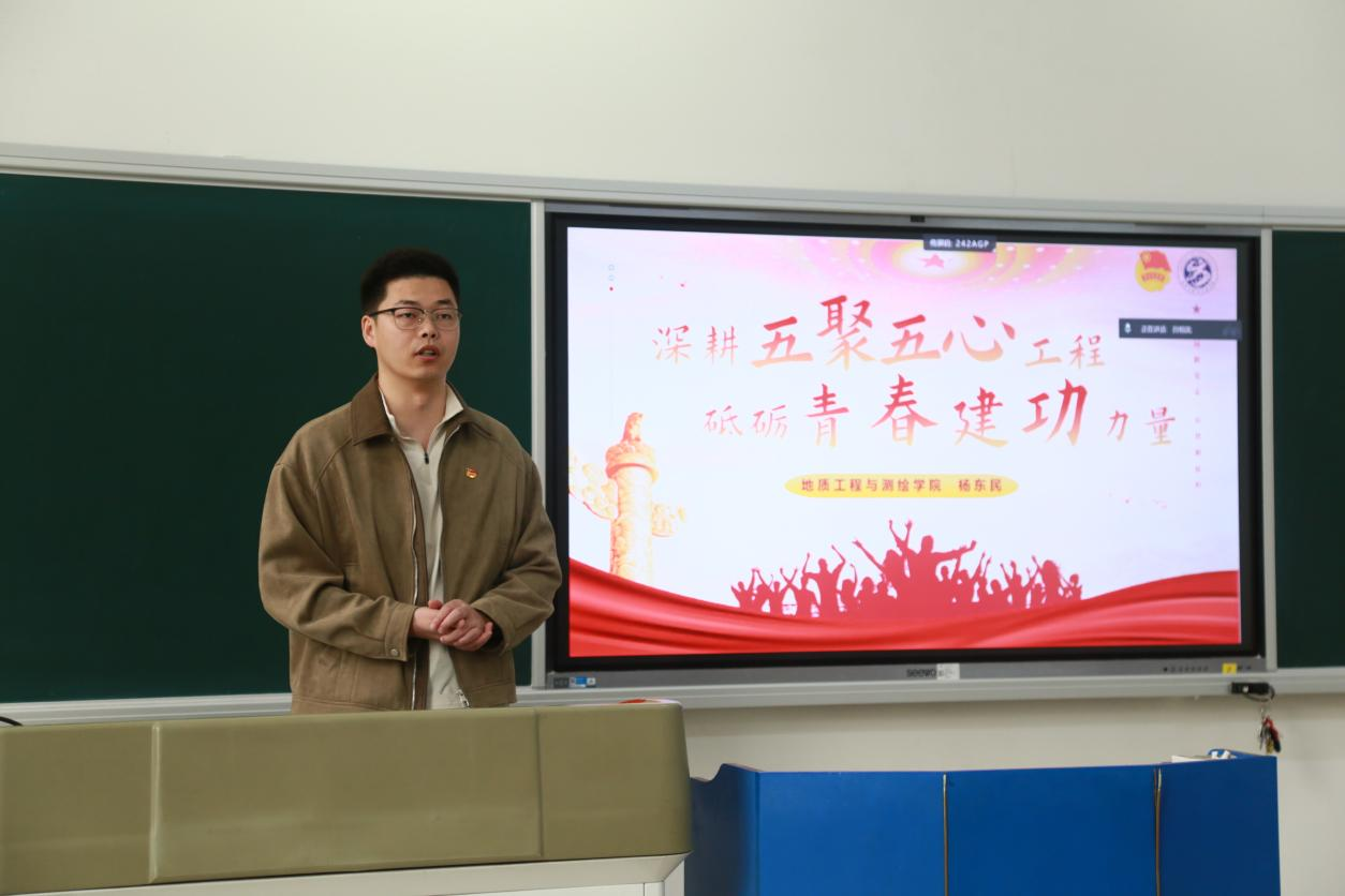 接着,杨东民进行发言。他肯定了过去一年中学院团学组织工作的丰硕成果,并围绕“为推进学校‘双一流’建设和国家‘教育强国’建设贡献‘地测人’的智慧和新生力量”阐述了对学生干部工作的期许和鼓励。他有关“提升学生干部的组织力和引领力”的发言吹响了此次大会的主旋律。最后,杨东民以“山海寻梦、不觉其远,前路迢迢、阔步而行”的诗意愿景有力地收束了本次发言。