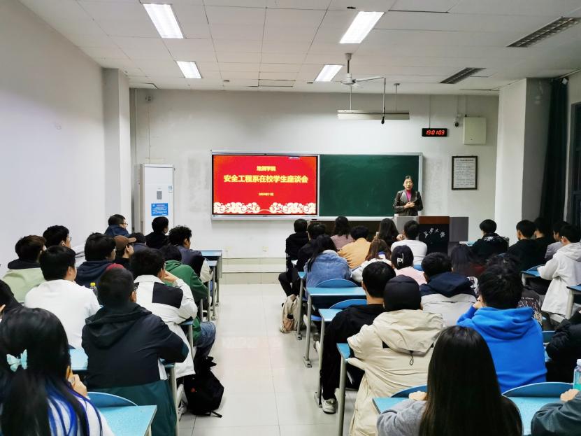 安全工程系座谈会由系副主任屈璐主持,她首先介绍了安全工程专业的行业特色、现状和未来发展等内容,对学生反馈的问题进行一对一解答,并表示同学们遇到的困惑与挑战是系里与学院关注的重点,鼓励同学们在学习过程中积极主动,培养独立思考和自主学习的能力。教师代表就实习情况、推免考研、就业方向等问题给予详实的回答及中肯建议。