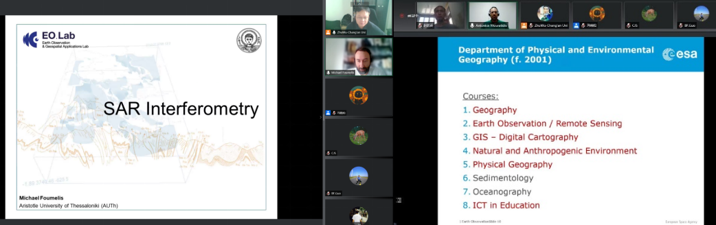 学生开设对地观测与地理信息处理系列课程,为期6周,合计6讲。6月18日下午,第一讲课程正式在线上开讲,主题为“InSAR原理与技术”,主讲人为亚里士多德大学Michael教授与Foumelis教授,主持人为测绘科学系朱武教授。