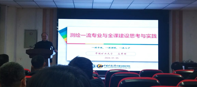 随后,高井祥教授分别从国家本科专业建设的系列文件入手,介绍了专业与课程两个“双万计划”以及五类“金课”的背景和目前进展,并通过对比分析了相关高校测绘类专业的建设思路,特别是以中国矿业大学测绘类专业为例,系统介绍了培养方案、专业认证持续改进、卓越工程师、本土国际化、本科生团队导师等培养模式改革及建设举措和目前取得的丰硕成果。