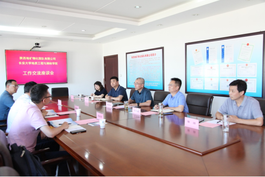 地球物理系包乾宗主任等一行3人前往陕西地矿物化探队有限公司交流走访。陕西地矿物化探队有限公司党委书记李新胜,副书记梁元盟,总工程师刘建利、副总工程师田靖、人力资源部主任何竞参加交流。