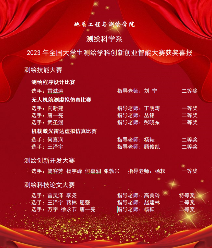 测绘专业本科生获得了特等奖1项,一等奖2项,二等奖7项的好成绩。