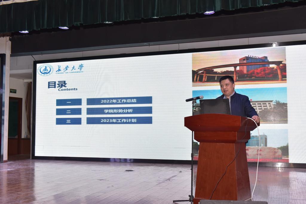 在南校区东院雁博园4楼研究生文化艺术中心大礼堂召开2022年度处级领导班子和领导干部年度考核大会。全体院领导班子与全院教职工参会,会议由院党委书记戴宏主持。