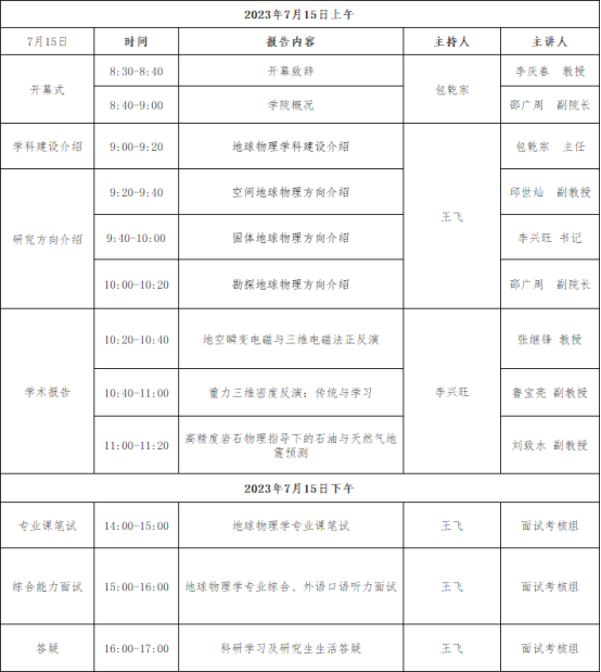 地球物理学科2023优秀大学生夏令营日程安排