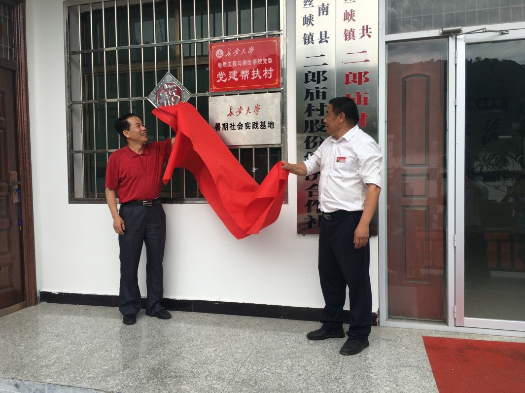 师生,并与二郎庙村村支书李红共同为大学生暑期社会实践基地揭牌。